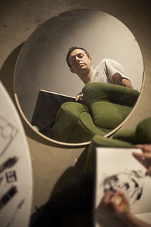 Set of portraits of the illustrator Petra Vcelka, in 2016. Besides being a virtuoso in classical drawing, Petr Vcelka works mainly in the field of digital painting and illustration which was also being projected in this shooting.